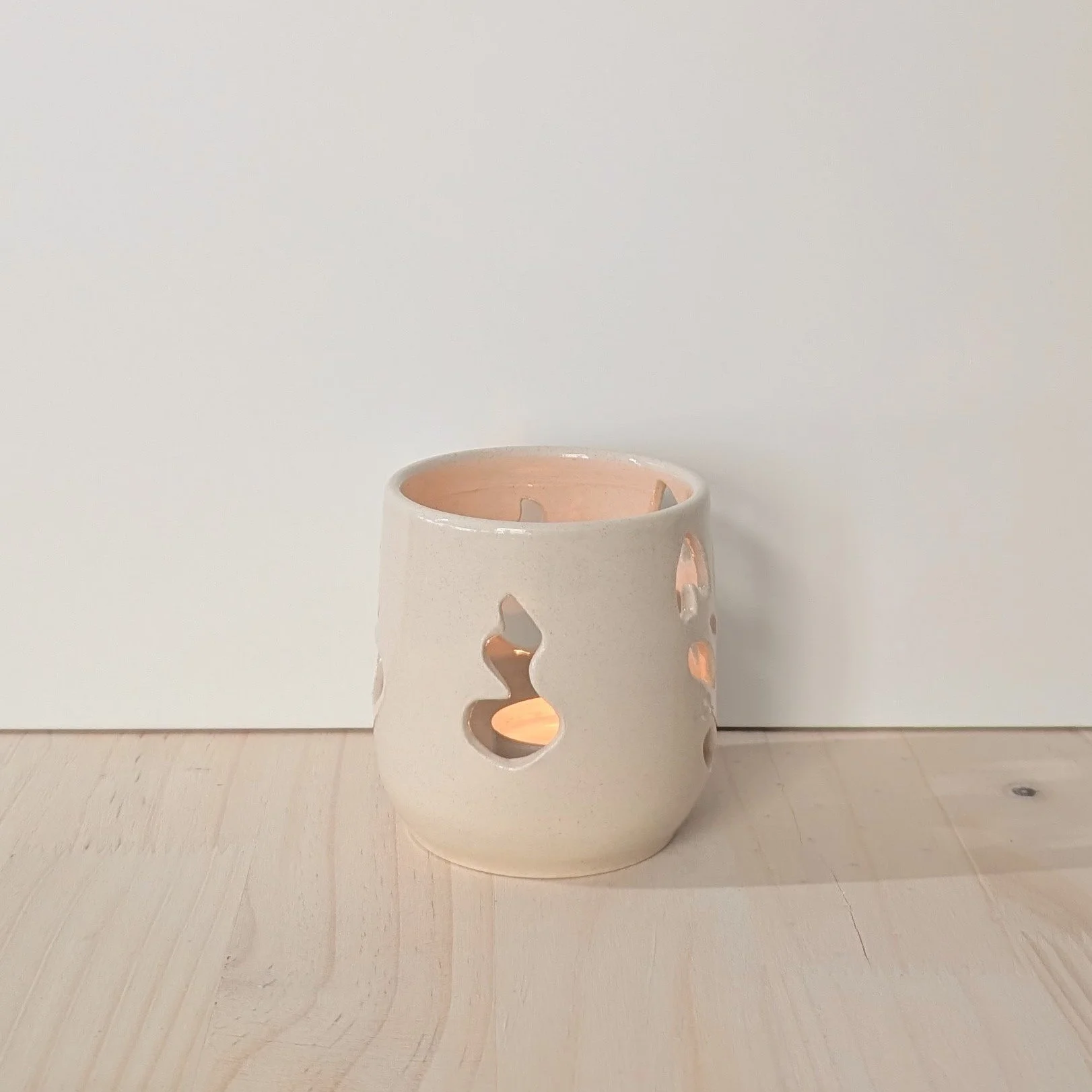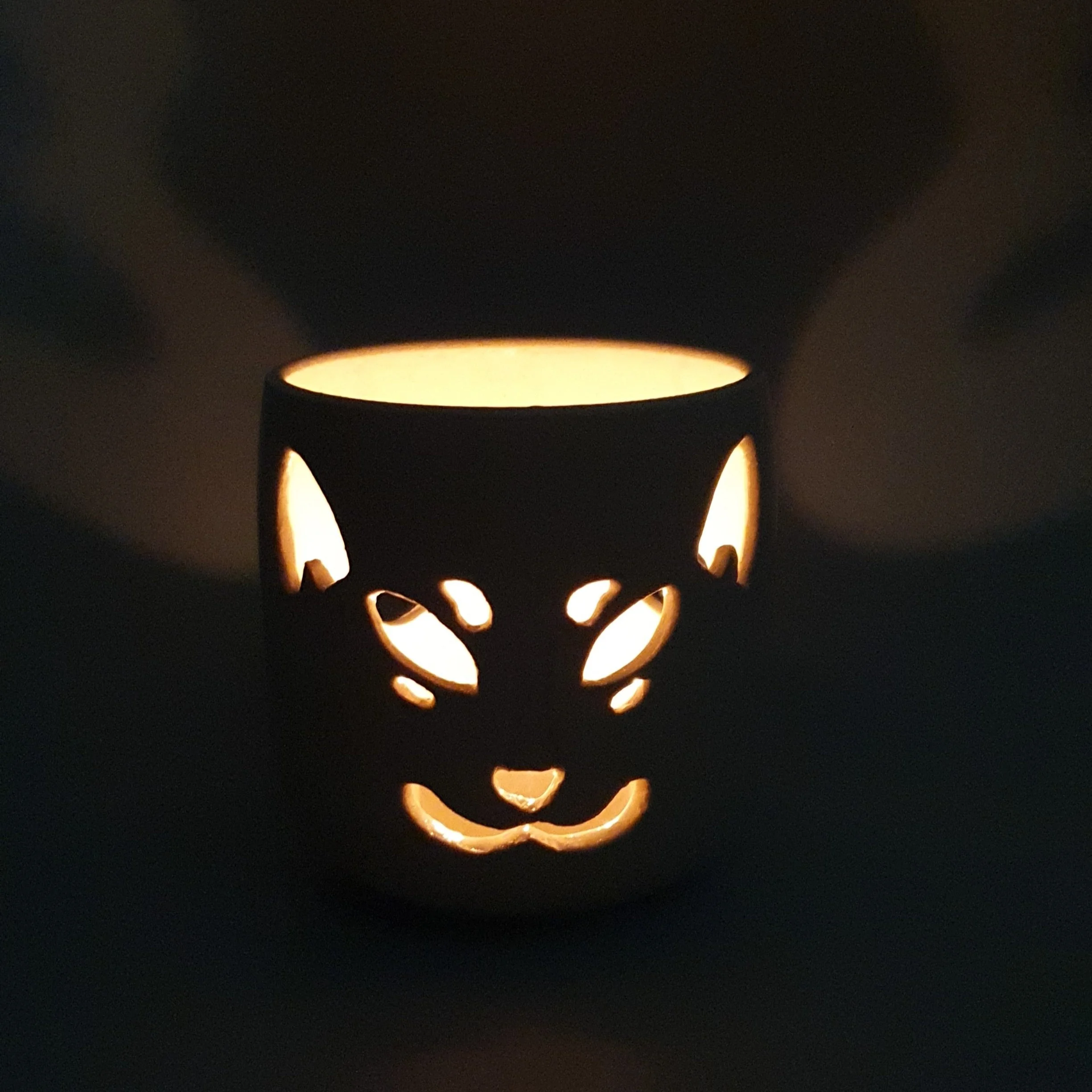 The cup is wheel thrown and the details are hand carved