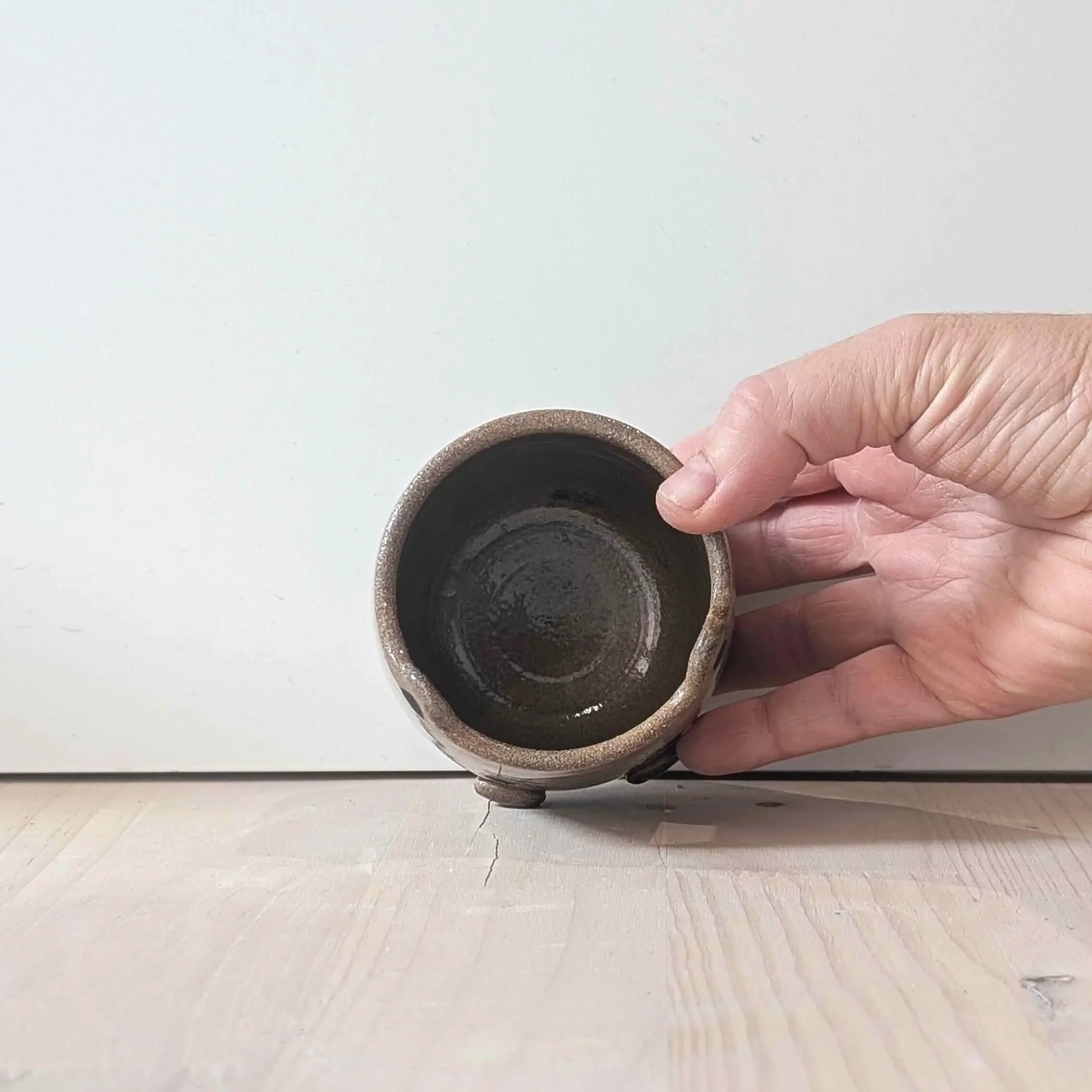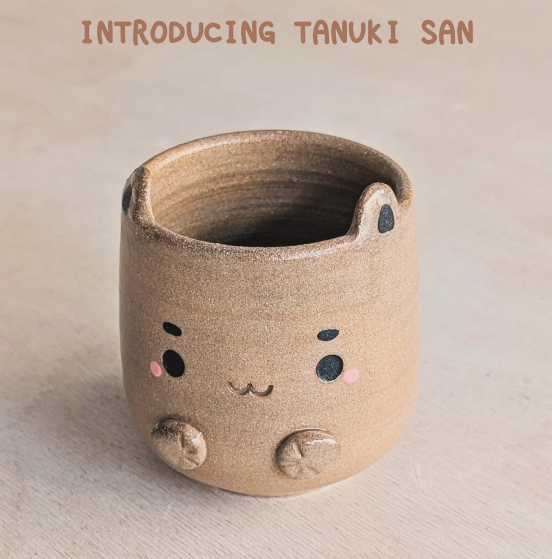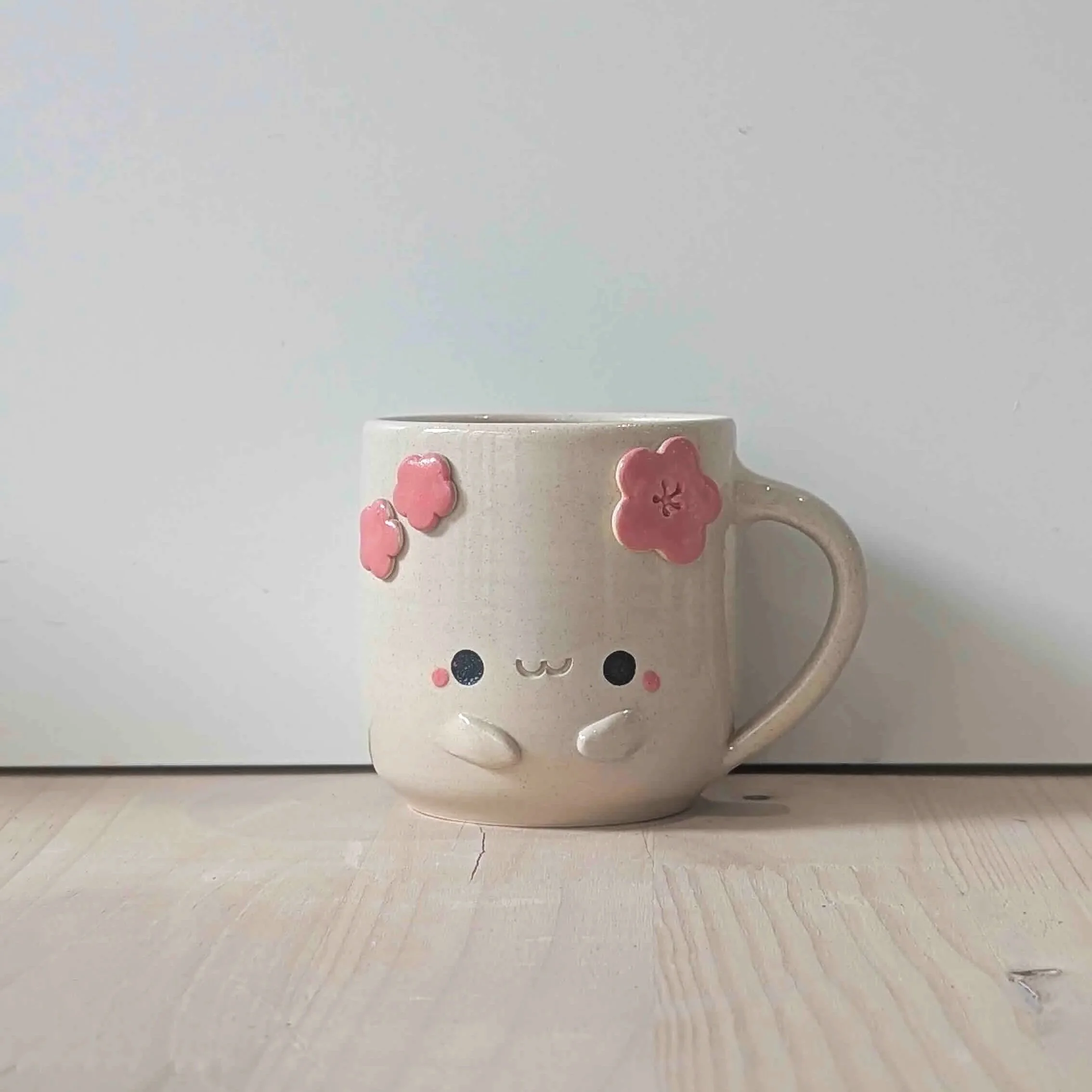 Tasse tournée au tour de potier, modelée et peinte entièrement à la main. Email transparent sur grès blanc. TASSE AVEC ANSE